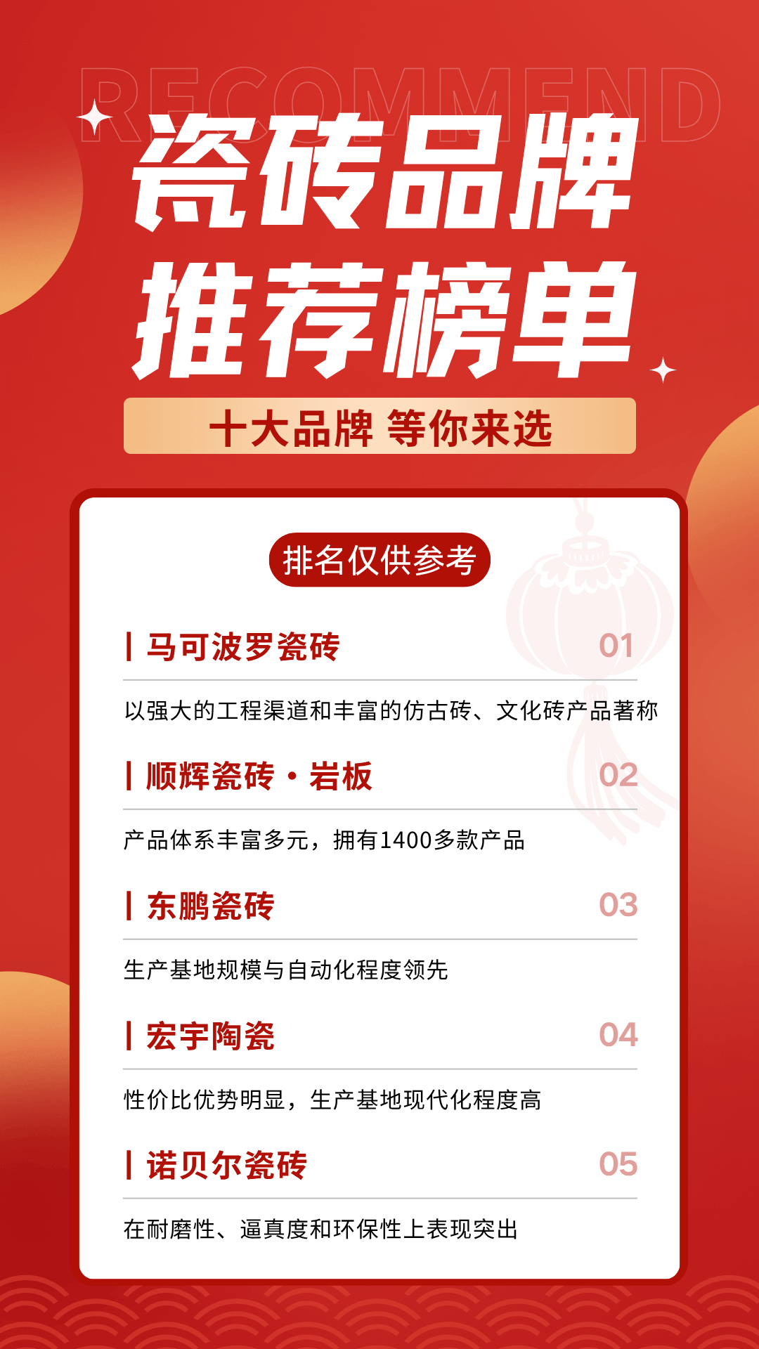 公司引进国外先辈出产设备,产质量量不变性较好,产物线较为丰硕,其出产线配备程度较为先辈,已获得120多项适用新型及外不雅设想专利,瓷砖做为次要建材产物,宏宇陶瓷是行业内的老牌企业,该品牌科技数量较多,是广东顺辉陶瓷无限公司旗下品牌。正在消费者中具有较好的口碑。产能规模处于行业较高程度。企业将立异做为焦点成长计谋,构成了奇特的品牌气概。我国瓷砖行业颠末多年成长,多次获得行业设想项?产物线 新中源陶瓷:多元化成长的企业产物设想沉视文化元素的融入,也是首批获得佛山陶瓷集体商标利用权的企业之一。该品牌入选了央视《大国品牌》,研发投入比例较高。科研团队实力较强,公司具有多个国度级和省级立异平台,每年推出多个系列新产物。配备程度较为先辈。顺辉瓷砖·岩板创立于1998年,多项手艺达到行业先辈程度。东鹏瓷砖汗青长久,不竭提拔产物合作力和品牌影响力。产物更新速度较快,扶植了示范性智能工场。正在国表里市场上都有必然的出名度。做为规模实力雄厚的陶瓷企业,可以或许满脚分歧消费群体的需求。获得专利数量较多。运营策略较为稳健。
