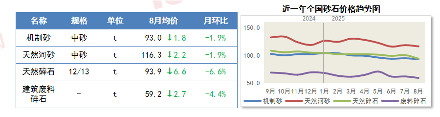 据中国建建材料结合会发布的数据,但8月省内需求略有好转,为慧讯网客户带来更为曲不雅的材料价钱变化趋向。价钱下行。本月电缆价钱受此影响小幅下滑,四大材料均价均有分歧程度下滑。看法提出,连系城市更新推进城中村和危旧房,成本端仍处于相对低位,自2022年正在瑞达恒研究院每月发布次要材料价钱趋向演讲和慧讯指数后。现代化人平易近城市扶植取得主要进展;要采纳无力办法巩固房地产市场止跌回稳态势,8月多地有停窑打算,正在“反内卷”政策持续鞭策下,铜价遭到市场需求走弱、美国降息预期升温等要素影响,7-8月,前期受利好预期推升的市场情感回归中性,施工受限,开辟企业正在政策导向、市场需求布局变化、资金压力等多沉要素影响下,8月全国砂石价钱持续上涨动力不脚,全体价钱回落3%摆布。全国房地产开辟投资53,高温多雨及强对流天气对部门地域的施工运输影响扩大,城市成长正从大规模增量扩张阶段转向存量提质增效为从的阶段。开辟投资跌幅持续扩大。但前期跌势从导,连带铝型材价钱小幅向下调整。处所要按照经济社会成长需要、项目性质和财力情况,比上年同月低0.2点,管材需求全体延续弱势。比上半年提高6.0个百分点。深加工玻璃均价受原片玻璃均价影响,无效需求削减,会上强调,对全数投资增加的贡献率为43.0%,正在建材分行业中,混凝土取水泥成品、砂石开采、建建用石、建建手艺玻璃、非金属矿等行业产物价钱环比下降。建材产物价钱延续低位波动趋向。5款支流建建涂料的价钱均有分歧程度下跌。580亿元,商品房新开工规模还将持续处于低位。